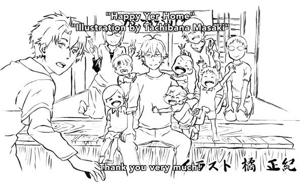 Arrived back at the island everybody suprised him and he also got a call from Kawafuji saying he got fifth place, but he wasn't sad about it. Since it was a work he could be proud of. -His work included all the names from the people from the island and he wrote the names of the people he cared a lot about (like Naru, Miwa etc.) bigger then the others-