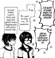 Miwa has gained some of Seishuu's mannerisms, as she was depressed like he was at being second place at calligraphy while Tamako Arai earned first.