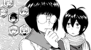 Miwa previously used Seishuu Handa's house as a base together with Tamako Arai and Naru Kotoishi. She and Tamako welcomed themselves into Seishuu's house and started looking for the things they used to have in there. She argued with him at first about how the house was their base at first, but warmed up to him soon afterwards. Most of the time, she invites herself in his house usually with Tamako and Naru.