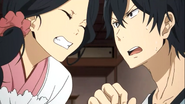 Seishuu is annoyed by Miwa's tendency to barge in and bully and boss him, despite her being younger. She also tends to trick him into doing favors for her or go her way (like tricking him into helping with her homework and purposely heating his bath too hot so he would open the window and she could see him naked). Despite her bullying tendencies towards him, she genuinely cares for him, as shown when she intervened between an argument between her dad (who was insulting Seishuu's lack of confidence in his calligraphy) and Seishuu and when in episode 8, Tama asked what she thought would happen after Seishuu was forgiven for his actions and Miwa changed the subject to avoid it. It would seem Seishuu has even rubbed off on her as shown when she submitted the homework she worked hard on with Seishuu and only won silver (second place) instead of first alongside Tama (mirroring episode 4 when Seishuu was depressed after his calligraphy lost and was second place to Kosuke's.